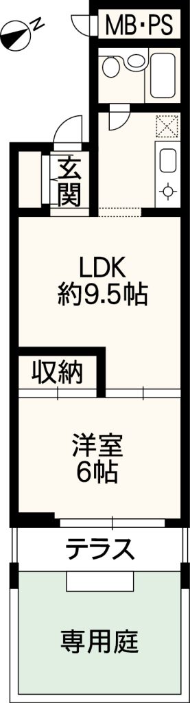 B・T同室、シャワー、トイレ、温水洗浄便座、IHクッキングヒーター、収納スペース、全居室収納、シューズボックス、照明器具、室内洗濯機置場、都市ガス給湯、フローリング、エアコン、モニター付きオートロック、モニター付きインターホン、ディンプルキー、テラス、専用庭、分譲賃貸