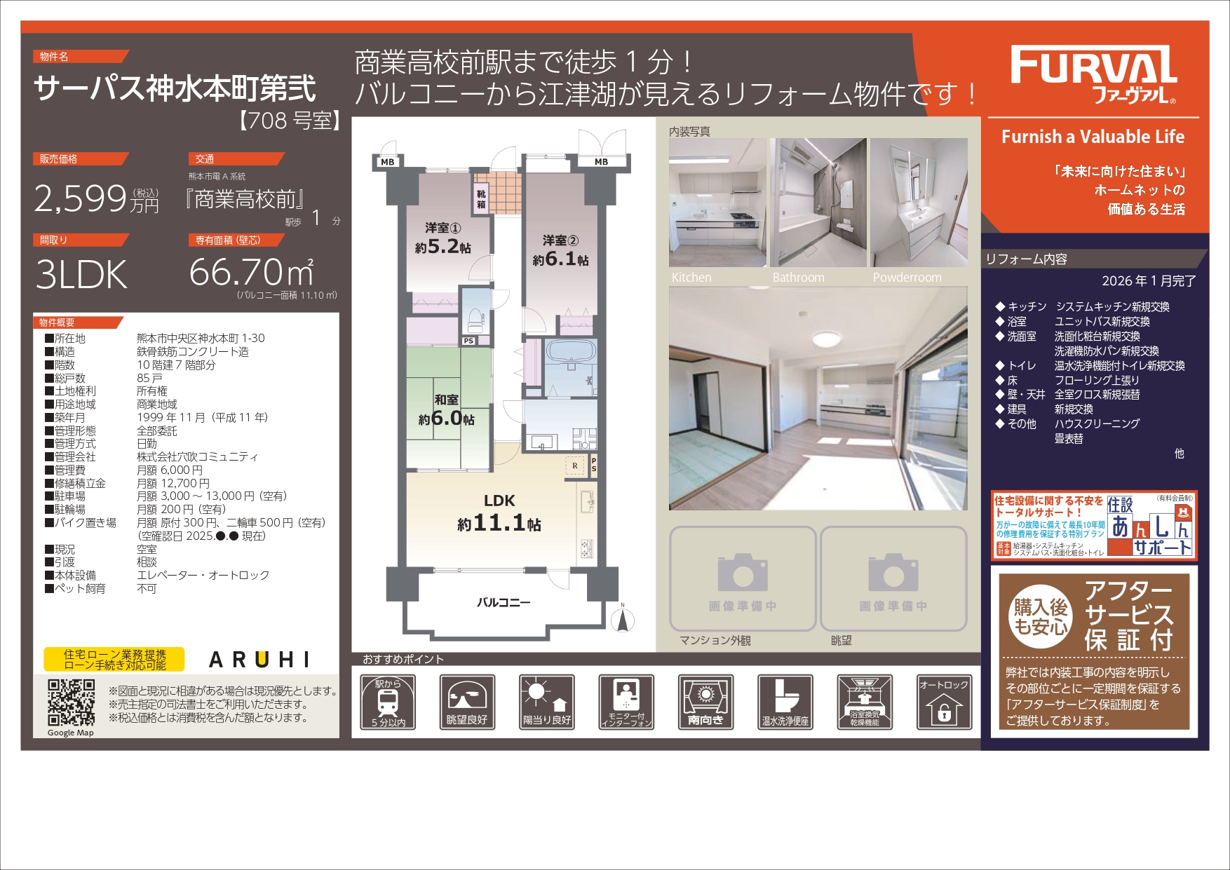 商業高校前駅まで徒歩1分!江津湖が一望できるロケーション!